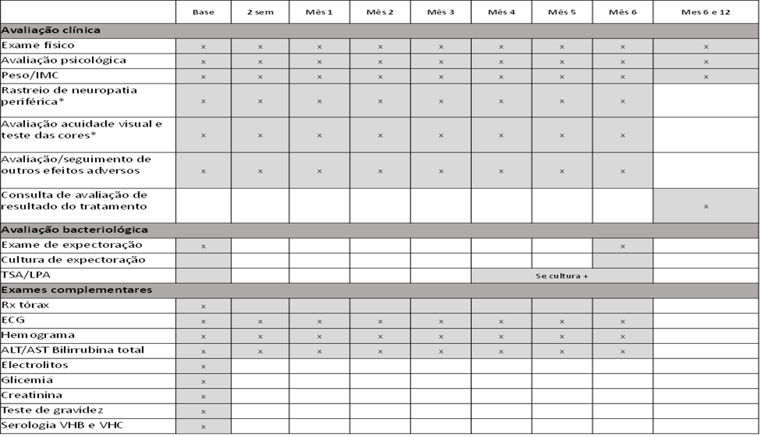 Cronograma de monitoria do tratamento – Regime Curto (BpaL/M)